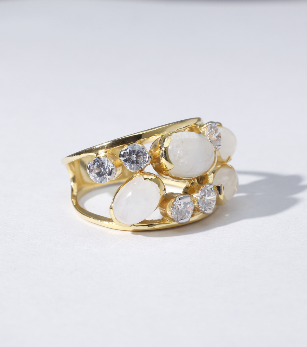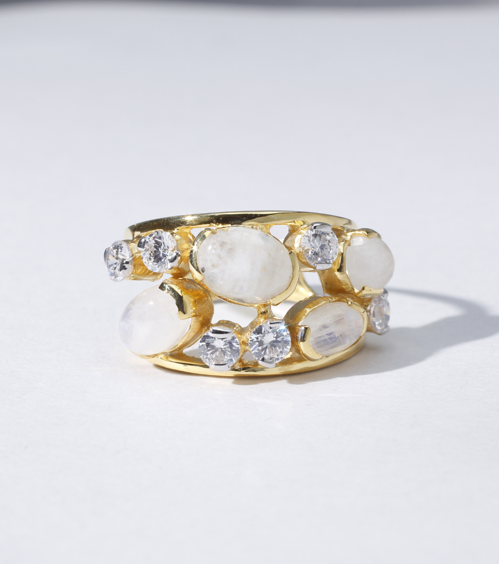 Sea Caramel Ring in Aquamarine and Moonstone